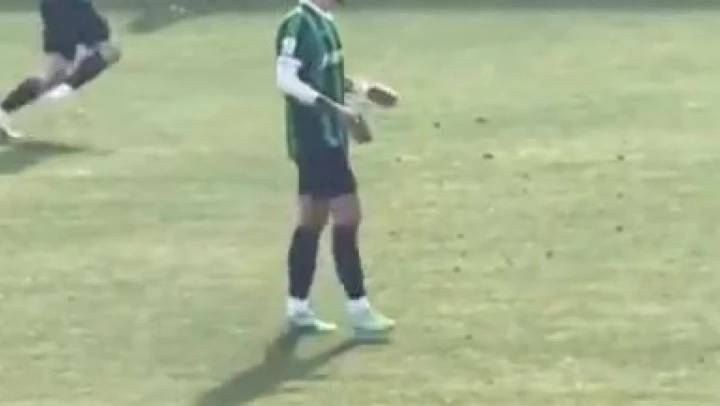 Sahadaki futbolcunun elindeki telefon sosyal medyada gündem oldu