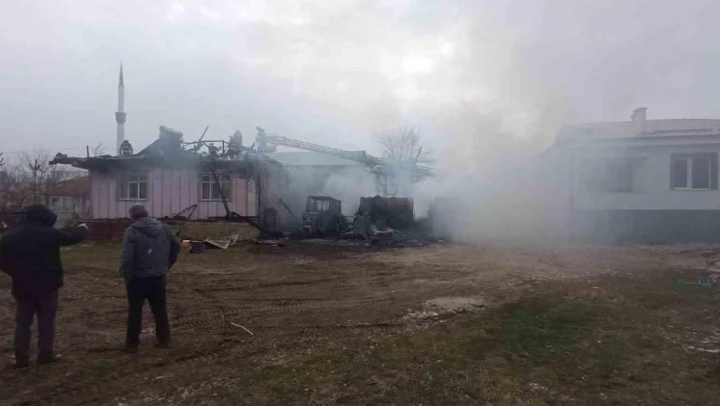 Samsun'un Ladik ilçesinde çıkan yangında bir ev ile traktör kullanılamaz hale geldi.