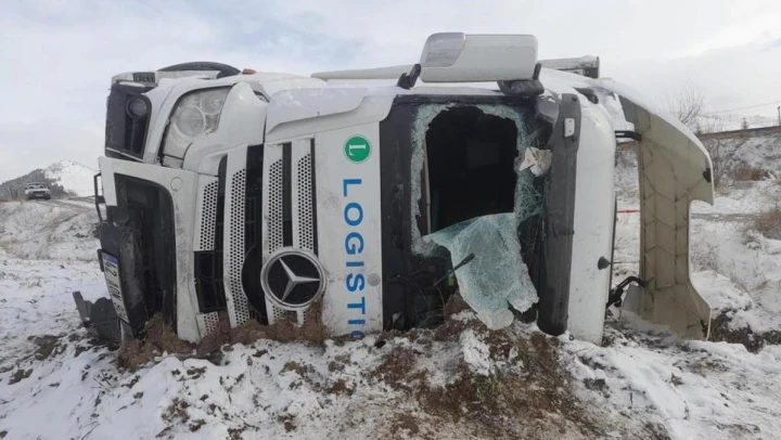 Afyonkarahisar'da tırın şarampole devrildiği kazada 1 kişi yaralandı.