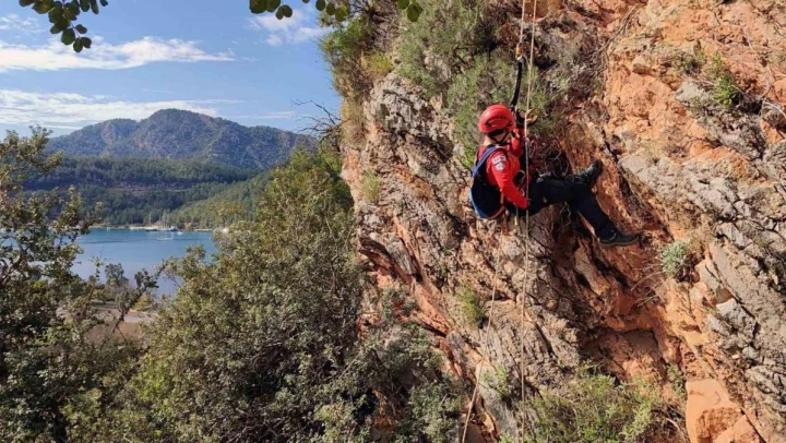 Edinilen bilgiye göre, Marmaris Orhaniye Mahallesinde dağlık alanda otlayan koyunlardan ikisi sarp kayalıklara indi. Kayalıklarda mahsur kalan koyunların sahibi tarafından yapılan yardım çağrısı sonrası bölgeye AKUT Marmaris ekibi sevk edildi.