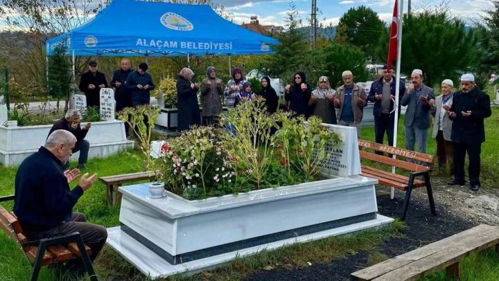 Samsun'un Alaçam ilçesinde, denetim noktasında bir aracın çarpması sonucu şehit olan polis memuru mezarı başında dualarla anıldı.