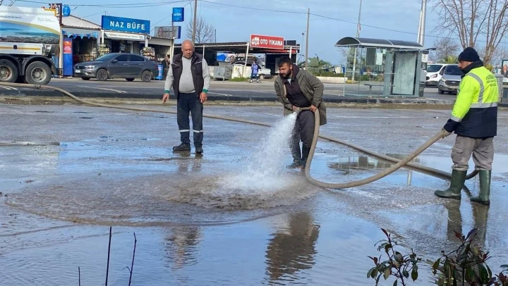 19 mesken, 6 iş yeri ve 3 yolda meydana gelen su baskınları sonucunda yaralarını silmeye çalışan Ayvalık'ta, belediye ekipleri tıkanan menfez ve kanalizasyon hatlarını da açabilmek için seferber oldu.