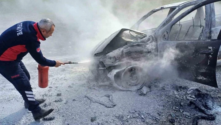 Çorum'un Sungurlu ilçesinde seyir halinde alev alan otomobil küle döndü.
