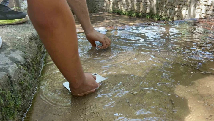 Bir işletmede çalışan 18 yaşındaki Remzi Adıkutlu, aşırı ısınan telefonunu soğutmak amacıyla soğuk akarsuda bulunan ılıcaya koydu. Telefonun soğumasıyla birlikte cihazın sorunsuz çalıştığını belirten Adıkutlu, 'Havalar aşırı sıcak, telefon da çok çabuk ısınıyor. Biz de çözümü suda bulduk. Şu anda hava 44 derece, hissedilen sıcaklık ise 49 dereceydi. Telefonu suya koyduk, hem soğudu hem de tertemiz oldu. Herhangi bir sorun yaşamadık' dedi.