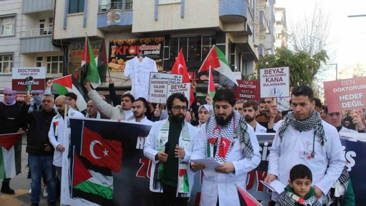 Siirt'te sağlık çalışanları ve doktorlar, Filistin'de yaşananlara olaylara dikkat çekmek amacıyla sessiz yürüyüş gerçekleştirdi.
