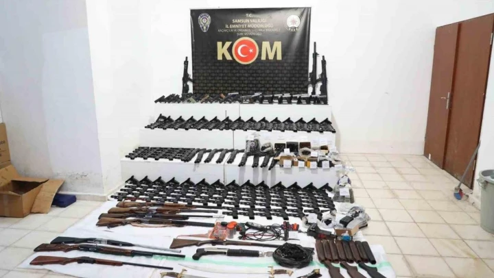 Samsun'da KOM polisi tarafından Samsun merkez, Bafra ilçesi, İstanbul ve Bursa illerinde düzenlenen 'Kafes' operasyonunda cephaneliği aratmayan silah ve mühimmat ele geçirildi.