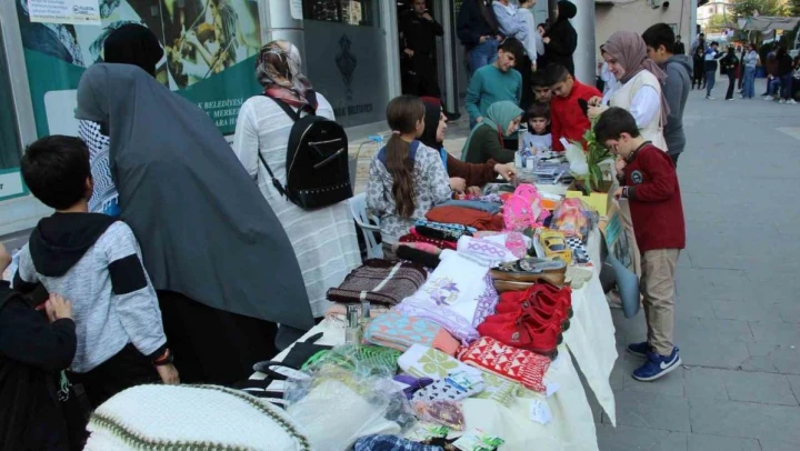 İl Müftülüğü Kur'an Kursu hocaları, öğrencileri ve kadınların hazırladığı yemek, tatlı ve el işleri satışa sunuldu. 1-3 Kasım tarihlerinde açık olacak yardım kampanyasında toplanan gelirler Filistin'e ulaştırılacak.