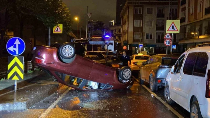 Şişli'de seyir halindeki otomobil, Beyoğlu'nda park halindeki araca çarptıktan sonra patlak lastik ve dikiz aynasız şekilde yola devam etti. Sürücülerin tüm uyarılarına rağmen yola devam eden araç, refüje çıkarak takla attı. Park halindeki iki araca daha zarar veren otomobilin sürücüsü yaralandı.