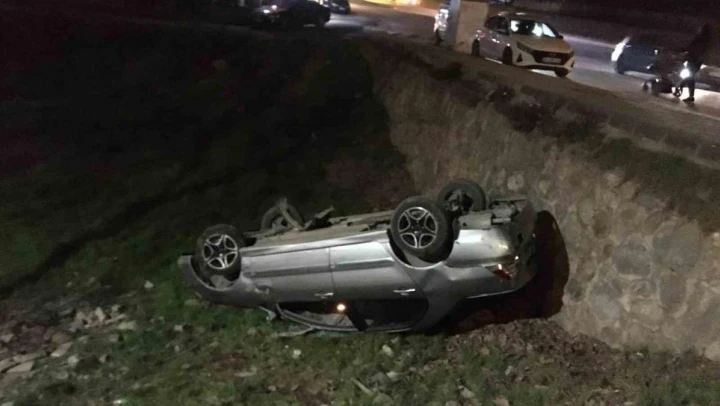 Kocaeli'nin Körfez ilçesinde virajda sürücüsün kontrolünden çıkan otomobil 5 metrelik istinat duvarından bir sitenin bahçesine düştü. Kazada sürücü ağır yaralanırken, otomobilden alkol şişesi çıktı.