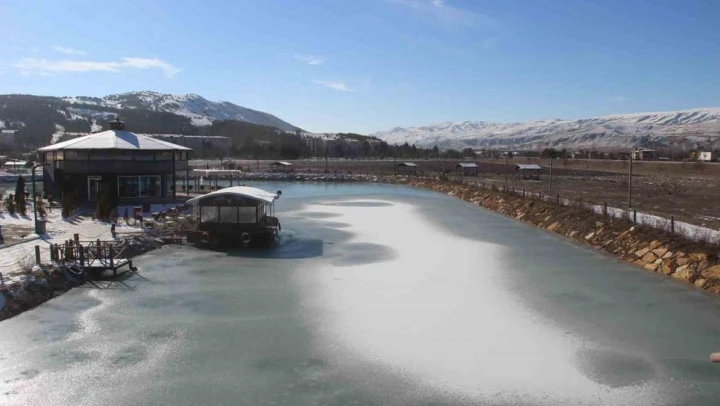 Termometrelerin sıfırın altında 13 dereceyi gösterdiği Sivas'ta göller dondu, bu sarkıtları oluştu.