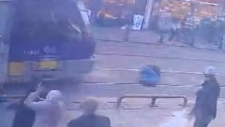 Sultanahmet'te yolun karşısına geçmek isteyen yaşlı adama tramvay çarptı. Çarpmanın etkisiyle yaralanan yaşlı adam hastaneye kaldırılırken, kaza güvenlik kamerasına yansıdı.