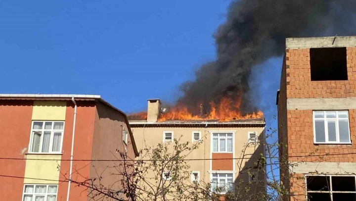 Sultanbeyli'de apartman çatısı alev alev yandı