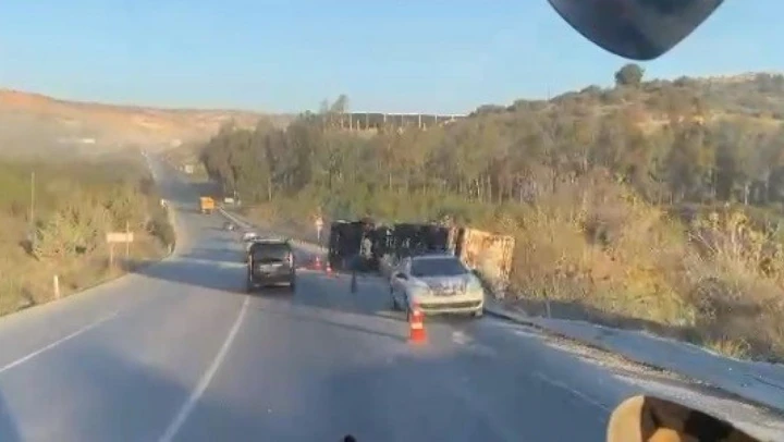 Tarsus'ta devrilen tırın sürücüsü yaralandı