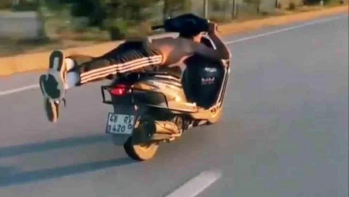 Olay, sosyal medyada görüntülerin yayınlanmasının ardından ortaya çıktı. Tehlikeli sürüşü tespit eden trafik ekipleri, kural ihlalinin 20 Ağustos 2023 tarihinde Fethiye-Çameli karayolunda 48 RV 429 plakalı motosiklet sürücüsü F.E.G. tarafından yapıldığını belirledi.