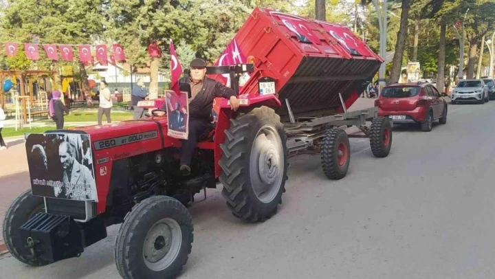 Traktörüyle Cumhuriyet kutlamalarına damga vurdu