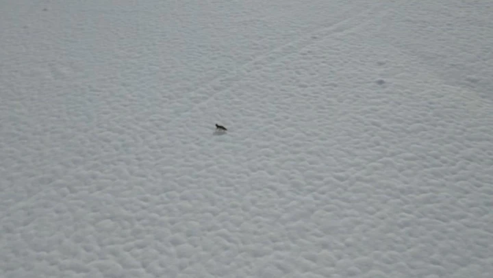 Tunceli'de karda yiyecek arayan tilki, dron kamerasına takıldı.