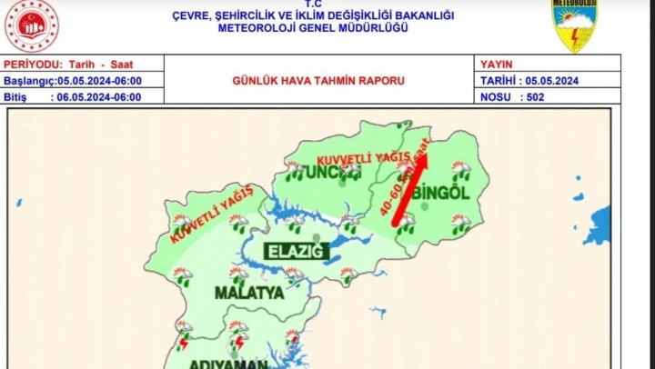 Meteoroloji 13. Bölge Müdürlüğü'nden yapılan açıklamada, 'Tunceli çevrelerinde beklenen kuvvetli sağanak yağışların, akşam saatlerinden sonra sıcaklıklardaki düşmeye bağlı olarak bölgenin yüksek kesimlerinde (1800 m üzeri) karla karışık yağmur ve yer yer kar şeklinde olması tahmin edildiğinden dolayı meydana gelebilecek sel, su baskını, heyelan, kar yağışı olan yerlerde tipi şeklinde yağış ve ulaşımda aksamalar gibi olumsuzluklara karşı dikkatli ve tedbirli olunması gerekmektedir' denildi.