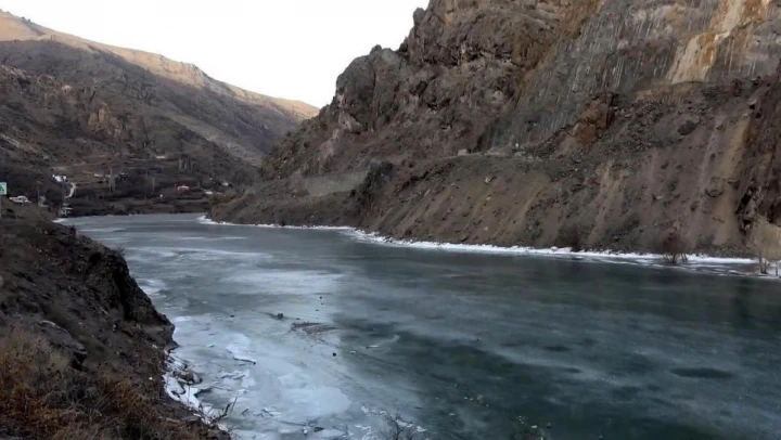 Türkiye'nin en hızlı akan nehri olan Çoruh buz tuttu