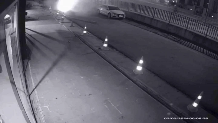 İlk müdahaleleri yapılan yaralılar ambulanslarla hastaneye kaldırılırken, kaza anı bir iş yerinin güvenlik kamerasına yansıdı. Çarpışmanın etkisiyle savrulan aracın demir korkulukları kırarak devrildiği güvenlik kameralarınca kaydedildi. Kazayı gören vatandaşların da yardım amacıyla hızla olay yerine gittikleri görüldü. Çarpışma sebebiyle etrafı toz bulutunun sardığı da güvenlik kamerası tarafından kaydedildi.