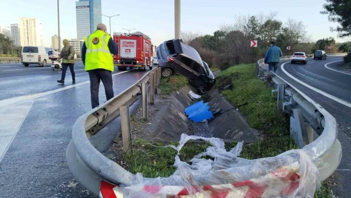 Ümraniye'de direksiyon hakimiyetini kaybeden sürücü bariyere çıktı