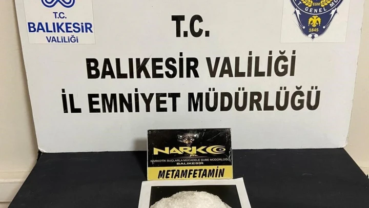 Balıkesir İl Emniyet Müdürlüğüne bağlı Narkotik Suçlarla Mücadele Şube Müdürlüğü'nce yürütülen çalışmalar sonucu; durdurulan yolcu otobüsünde T.T. isimli şahsın üzerinde yapılan aramada piyasaya sürülmek üzere; turşu bidonları arasında kamufle edilmiş 498 gram metamfetamin ele geçirildi.