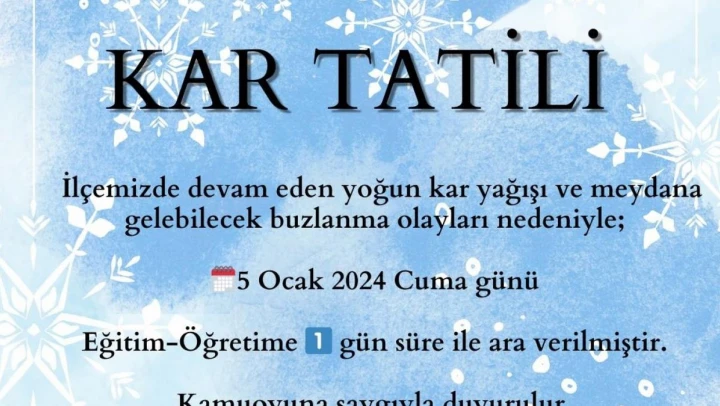 Muradiye ve Saray Kaymakamlıkları tarafından sosyal medya hesaplarından yapılan paylaşımda, 'Yaşanan yoğun kar yağışı sebebi ile ilçe genelinde tüm resmi ve özel, örgün ve yaygın eğitim, okul ve kurumlarımızda 5 Ocak 2024 Cuma günü 1 gün süre ile eğitime ara verilmiştir' denildi.