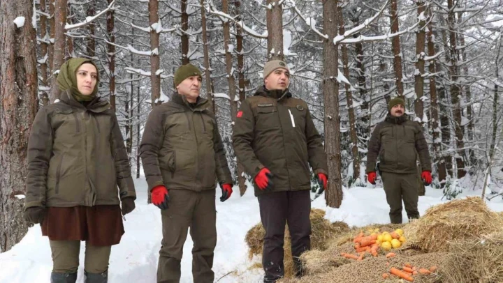 Yaban hayvanları aç kalmasın diye yem bırakıldı
