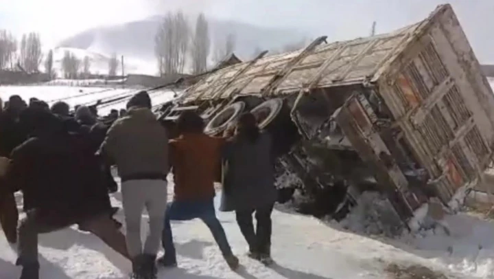 Edinilen bilgiye göre, kaza, Gürpınar ilçesinde bağlı Tutmaç Mahallesi yakınlarında meydana geldi. Sürücüsünü ismi öğrenilemeyen saman yüklü kamyon, yolun karlı ve buzlu olmasından dolayı kanala düşerek yan yattı. Yara almadan kurtulan sürücünün imdadına mahalle sakinleri yetişti. Yanlarına getirdikleri ipleri kamyona bağlayan vatandaşlar, hep birlikte iplere asılarak saniyeler içerinde düzelttiler. Bu görüntüler kısa sürede sosyal medyada takdir topladı.