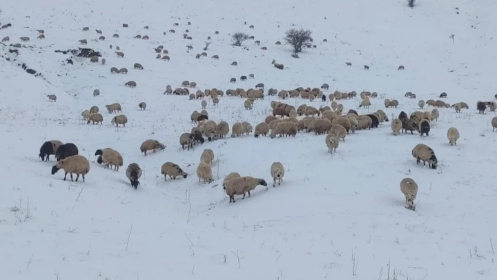 Öte yandan yine Aşkale'nin Sarıbaba köyünde koyunculuk yapan çiftçi de erken bastıran kar yağışı nedeniyle hayvanlarının kışlık yiyeceğini tam temin edememesi neticesinde karla kaplı dağlarda koyunlarını otlattı.