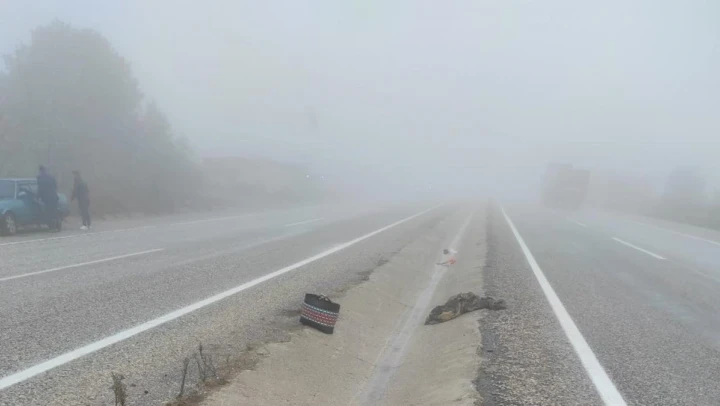 Manisa'nın Sarıgöl ilçesinde yoğun sisin etkili olduğu bir anda yolun karşısına geçmek isteyen kadın, otomobil çarpması sonucu ağır yaralandı.