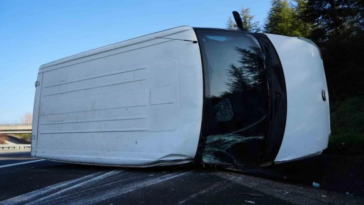 Anadolu Otoyolu'nda minibüs devrildi: 2 yaralı