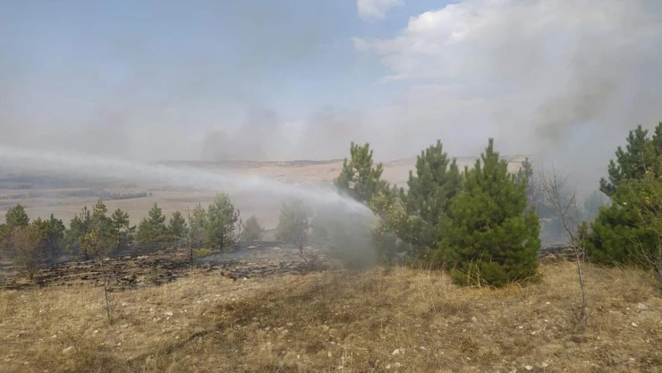 Çorum’un Alaca ilçesinde çıkan anız yangını ormanlık alana sıçradı.