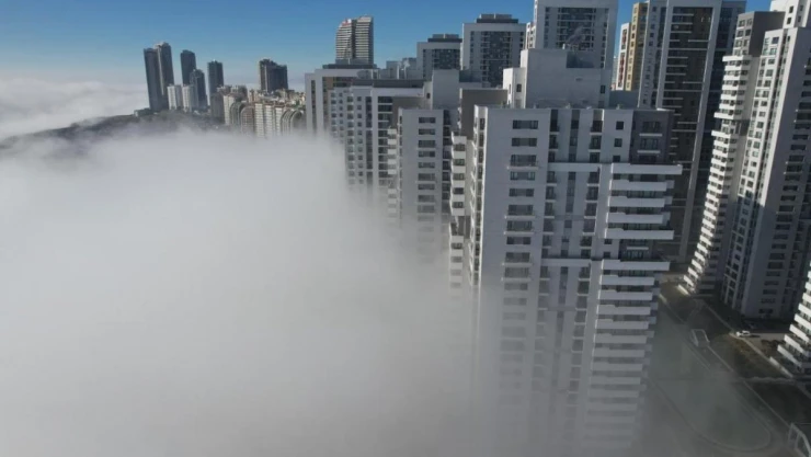 Ankara’da gece saatlerinden itibaren etkili olan yoğun sis, günün ilk ışıklarıyla birlikte şehrin büyük kısmında hakim oldu. Görüş mesafesi yer yer 40 metreye kadar düştü. Sis nedeniyle şehir merkezindeki gökdelenler kartpostallık görüntüler oluşturdu.