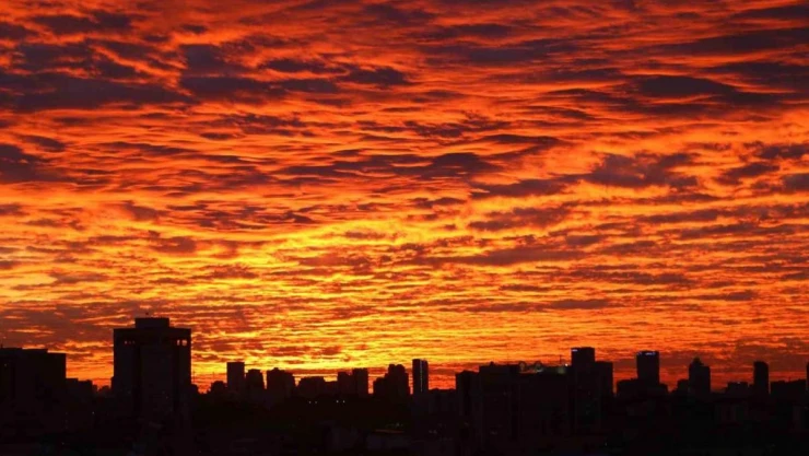 Ankara’da saatlerin 17.20’yi geçmesiyle başlayan gün batımı Başkenti kızıla boyadı. Bulutlar renk cümbüşü oluşturdu, kartpostallık görüntüler ortaya çıktı. Vatandaşlar gün batımını fırsat bilerek fotoğraf çektirmeyi ihmal etmedi. Gün batımının oluşturduğu görüntülere Ankara’nın simgelerinden Anıtkabir ve Kocatepe Camii de yansıdı.