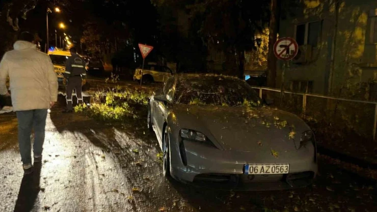 Edinilen bilgilere göre olay, saat 18.30 sıralarında meydana geldi. Şiddetli rüzgar nedeniyle Ayrancı mahallesi Tirebolu Sokak’ta bulunan bir ağacın büyük bir dalı yol kenarında park halinde bulunan 06 AZ 0563 plakalı Porsche marka lüks otomobilin üzerine düştü. Belediye ekipleri ağacı parçalayarak altında kalan ağacı çıkardı. Lüks otomobilde maddi hasar meydana geldi.