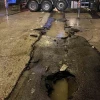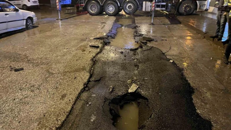 Ankara'da yağmur nedeniyle yol çöktü, çöp kamyonu askıda kaldı