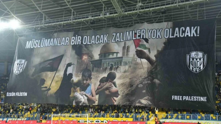 MKE Ankaragücü taraftarı Trendyol Süperlig’in 35’inci hafta karşılaşmasında Filistin’e destek koreografisi gerçekleştirdi.