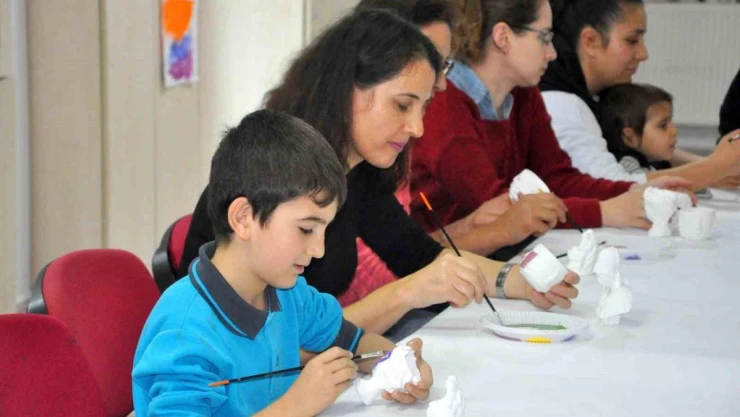Muğla Gençlik ve Spor İl Müdürlüğü'ne bağlı faaliyetlerini sürdüren Muğla Uluslararası Gençlik Merkezi'nde anne çocuk aynı atölyede bir araya geldi.