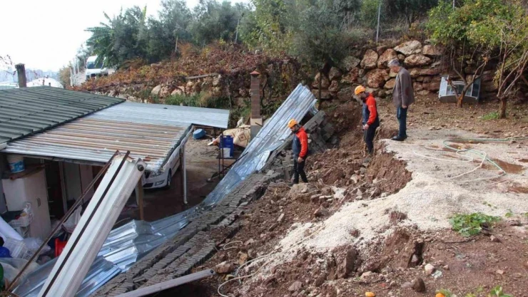 Kumluca ilçesinde sabaha karşı başlayan yağmur sonrası yumuşayan toprak nedeniyle 15 metre uzunluğunda ve 3 metre yükseklikteki istinat duvarı çöktü. Ailelerin evde olduğu sırada yaşanan çökme sırasında şans eseri kimse yaralanmazken, bir evin çıkma olarak tabir edilen bağımsız mutfak kısmı yıkıldı, diğer evin duvarlarında çatlak oluştu.