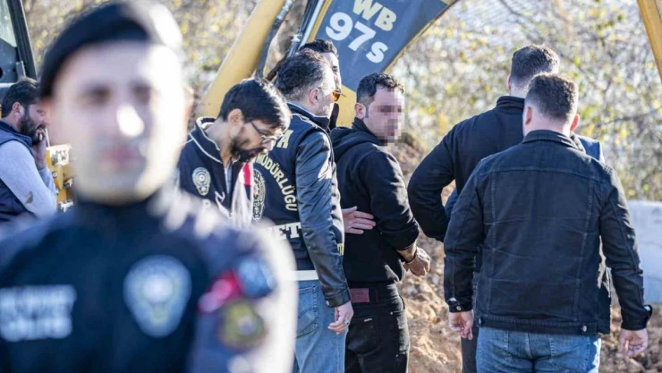 Elleri kelepçeli şekilde cesedin yerini gösterdi