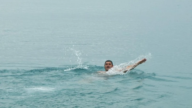 Spor amaçlı denize giren Hüseyin Yılmaz, “En güzel spor denize girmek. Vücudum daha hareketli oluyor. Hava şu an güzel, su da güzel. Dört mevsimi bir arada yaşıyorsun. Herkese tavsiye ederim” dedi.