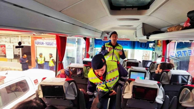Yozgat'ın Çekerek ilçesinde yolcu taşımacılığı yapan firmalar ve araç sürücüleri İlçe Jandarma Komutanlığı ekipleri tarafından güvenli seyahat konusunda bilgilendirildi.