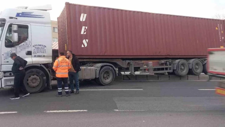 Araca çarpmamak için manevra yapan tır, refüje çıkıp karşı şeride geçti