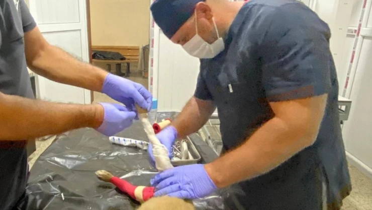 Çukurca kara yolunda araçla geçmekte olan askerler, araç çarpması sonucu yolda yatan yavru bir köpekle karşılaştı. Yaralı köpeği yanlarına alan askerler, durumu hemen Hakkari Belediyesi Veteriner İşleri Müdürlüğü ekiplerine bildirdi. Saat 23.30 sıralarında belediye kliniğine ulaştırılan yavru köpek, Veteriner Tekniker Fatih Çiftçi tarafından ilk müdahalesi yapılarak hemen ameliyata alındı. Saat 02.00’a kadar yapılan müdahale sonucu arka iki ayağında kırık ve bel kısmında zedelenme olduğunu tespit edilen yavru köpek belediye kliniğinde müşahede altına alındı.