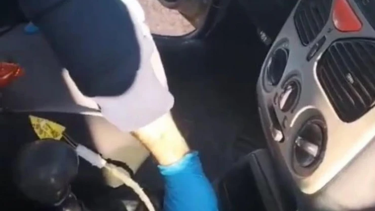 Aracın vites kısmını gizlenen uyuşturucu 'Ceku' buldu