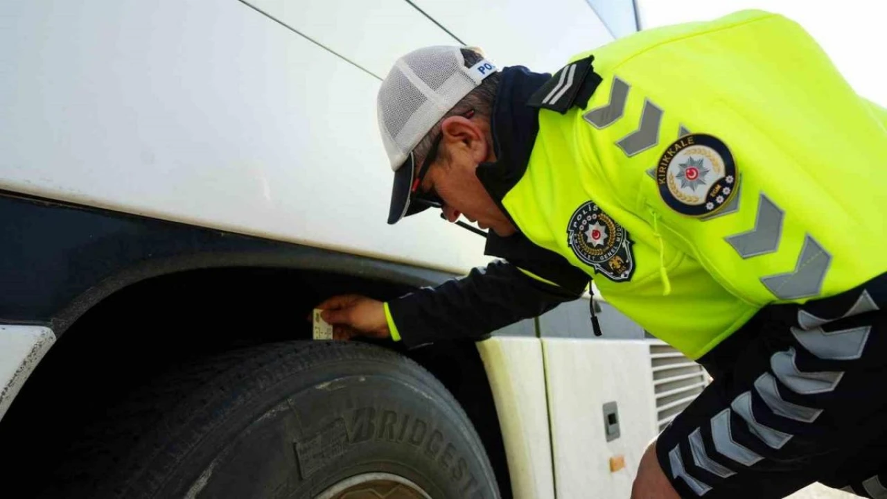 İl Emniyet Müdürlüğü Bölge Trafik Denetleme Şubesi ekiplerince, Kırıkkale-Ankara D200 kara yolu üzerindeki uygulama noktasında yapılan denetimde durdurulan tır, kamyon, otobüs ve minibüs gibi ticari araçların lastikleri kontrol edildi. Ekipler, araçların kış lastiği takıp takmadığı kontrol ederken, kış lastiği bulunanların ise diş derinliğine baktı. Sürücüleri, araçlara kış lastiği takmanın önemi konusunda da bilgilendirdi.