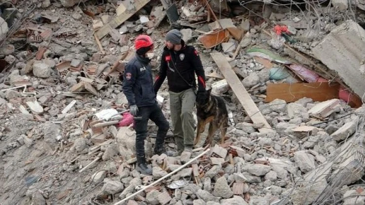 Çok sayıda binanın yıkıldığı kent adeta enkaza dönerken, çalışmalarda arama kurtarma köpekleri devreye sokuldu.