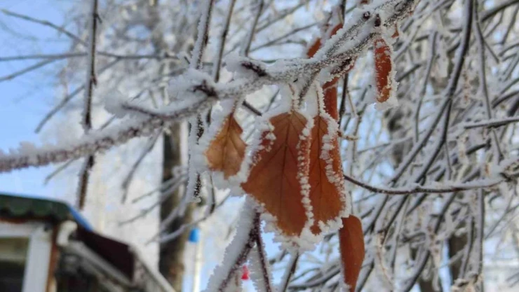 Ardahan'da soğuk hava etkili olmaya devam ediyor. Hava sıcaklığını sıfırın altında 11 dereceye düştüğü kentte, soğuktan ağaçlar kırağı tuttu.