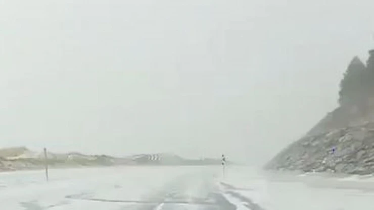 Ardahan’da etkili olan şiddetli dolu nedeniyle yollar beyaza büründü.