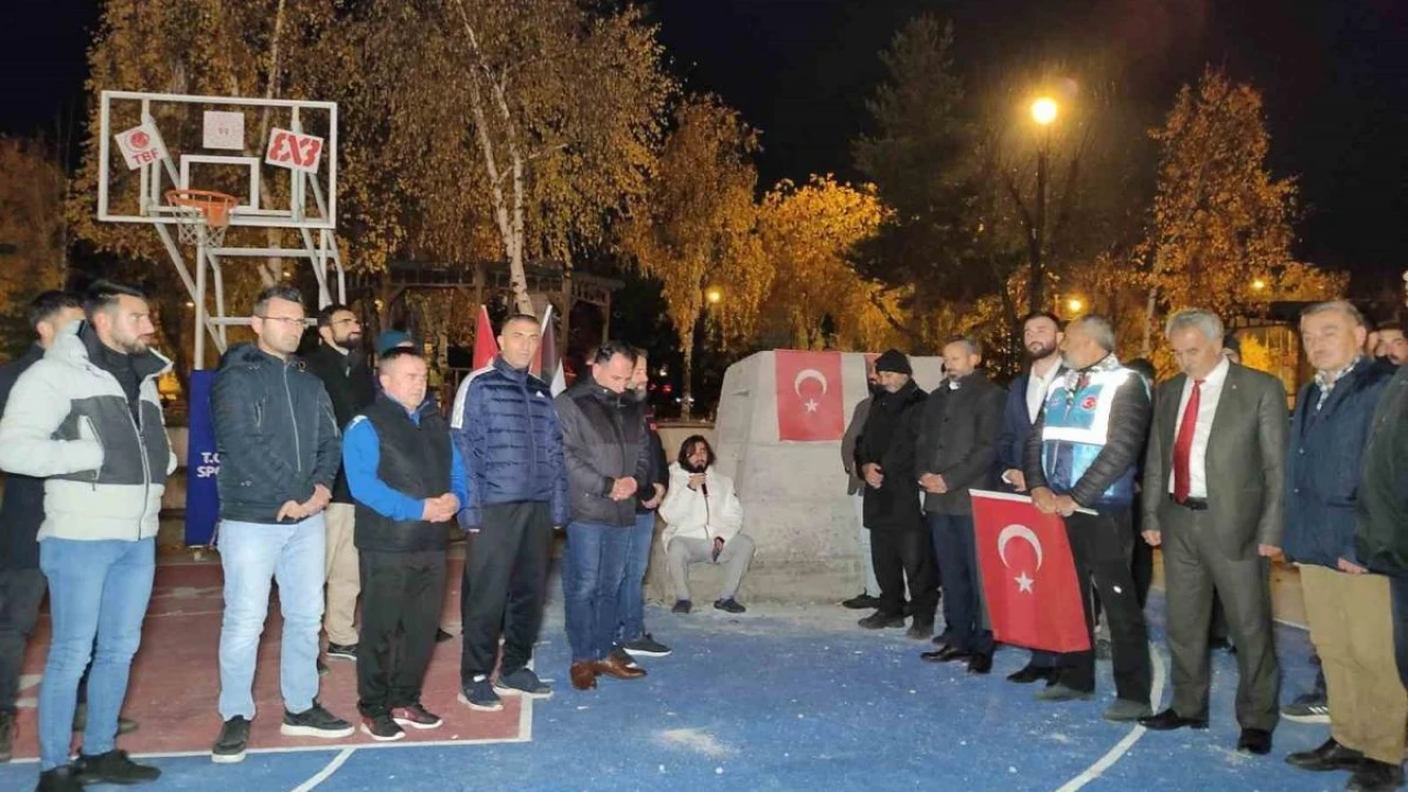 Ardahan'da gece saatlerinde onlarca kişi, İsrail'in Gazze'ye yönelik saldırılarını protesto etmek için bir araya geldi.